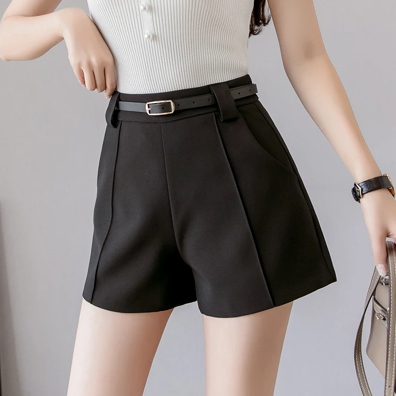 Promo Summer 2019 Women Solid Shorts Loose Casual Shorts High Waist Black Wide Leg OL Shorts Work Wear Cl