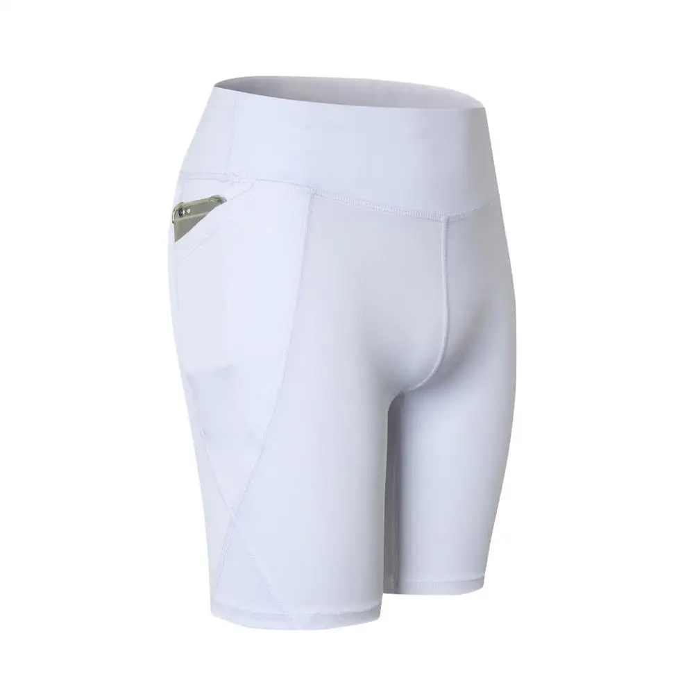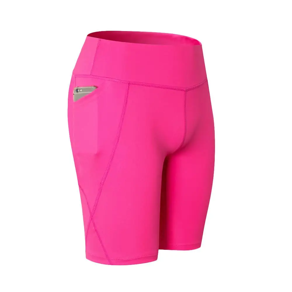 Ideal Women's High Waist Solid Color Yoga Short With Pocket Abdomen Control Training Running fitness legg