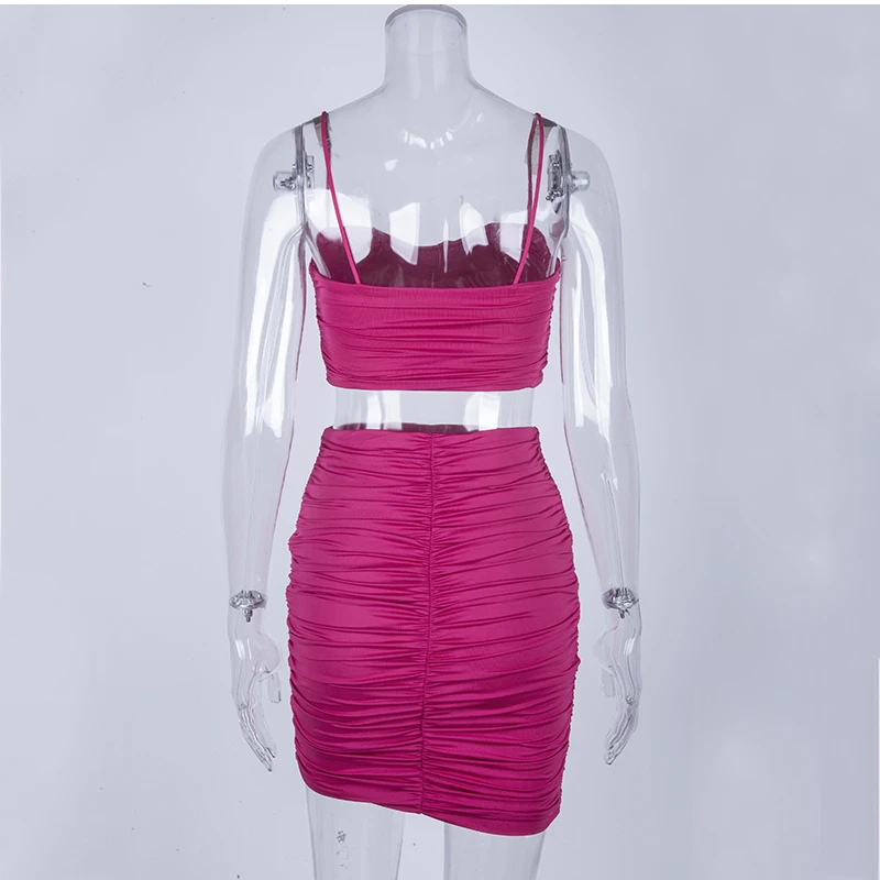 lower price NewAsia 2 Layers Ruched Two Piece Set Pink Outfits Set Crop Top And Mini Skirt Set 2019 Summer Part